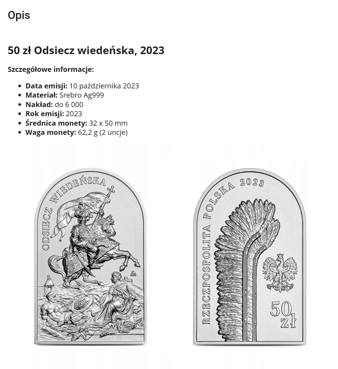 Wybita w 2023 roku przez Mennicę Polską, wykonana ze srebra próby 925,